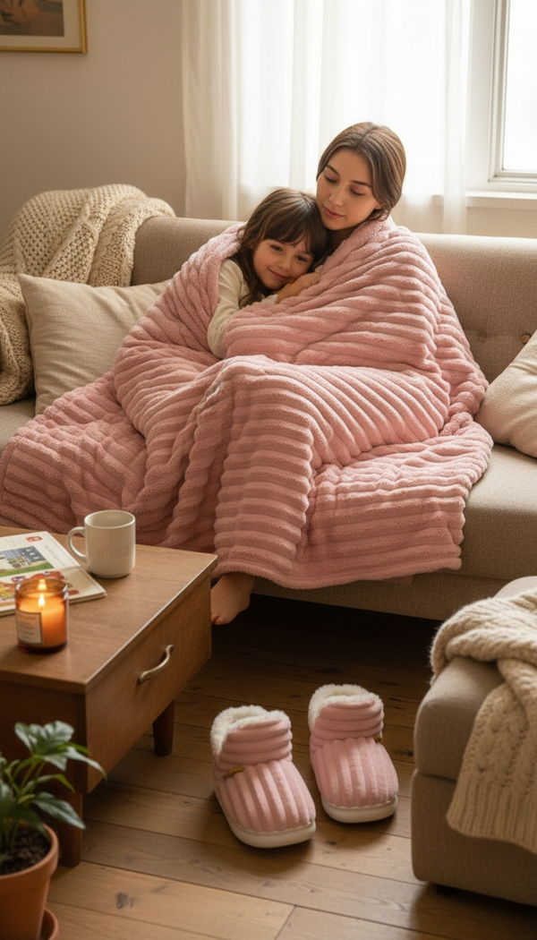 Wrap yourself in softness from head to toe. Match your slippers and blanket for the perfect home cocoon.